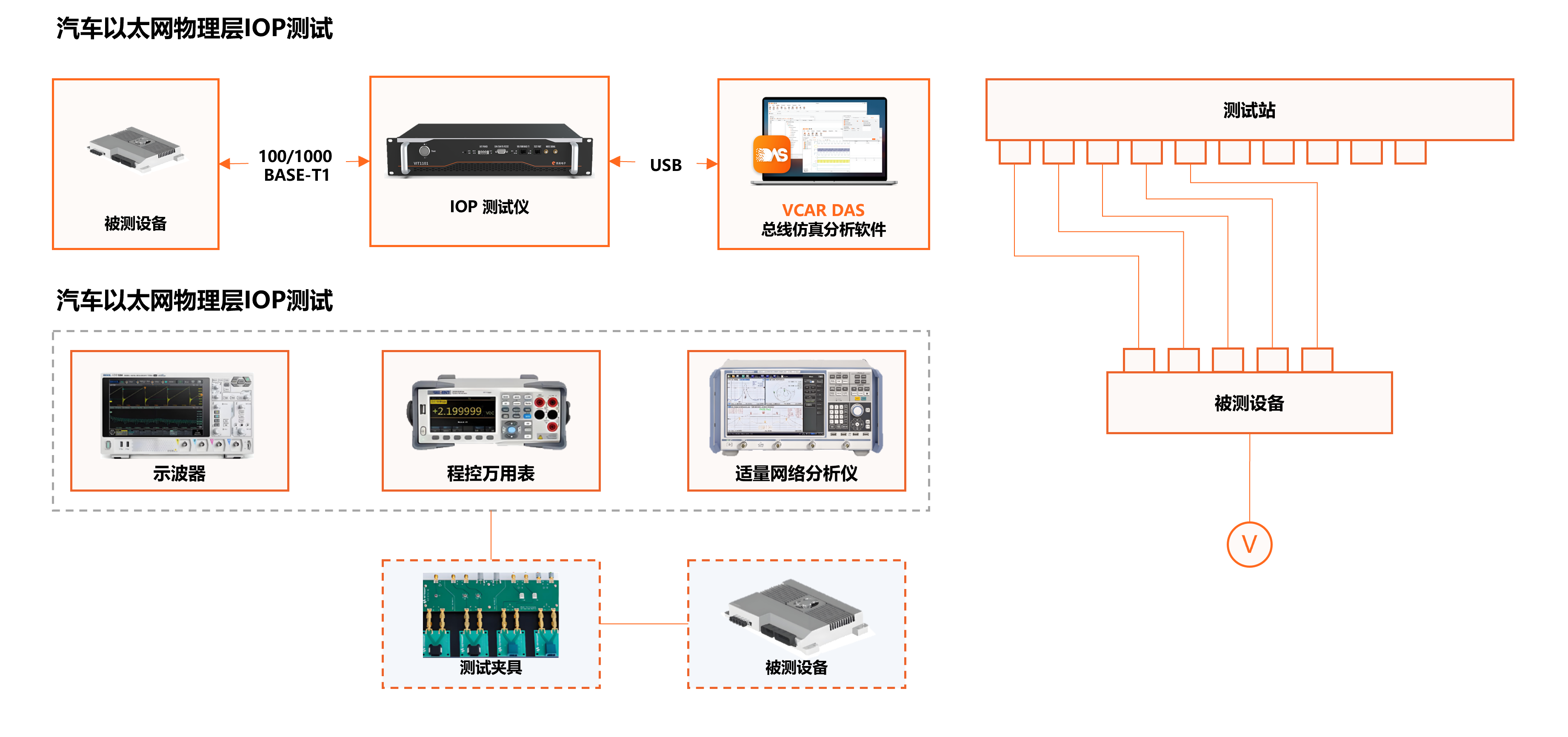 开展车载以太网物理层 IOP 测试,验证物理层的互联互通性、相互通信能力及物理层故障诊断能力