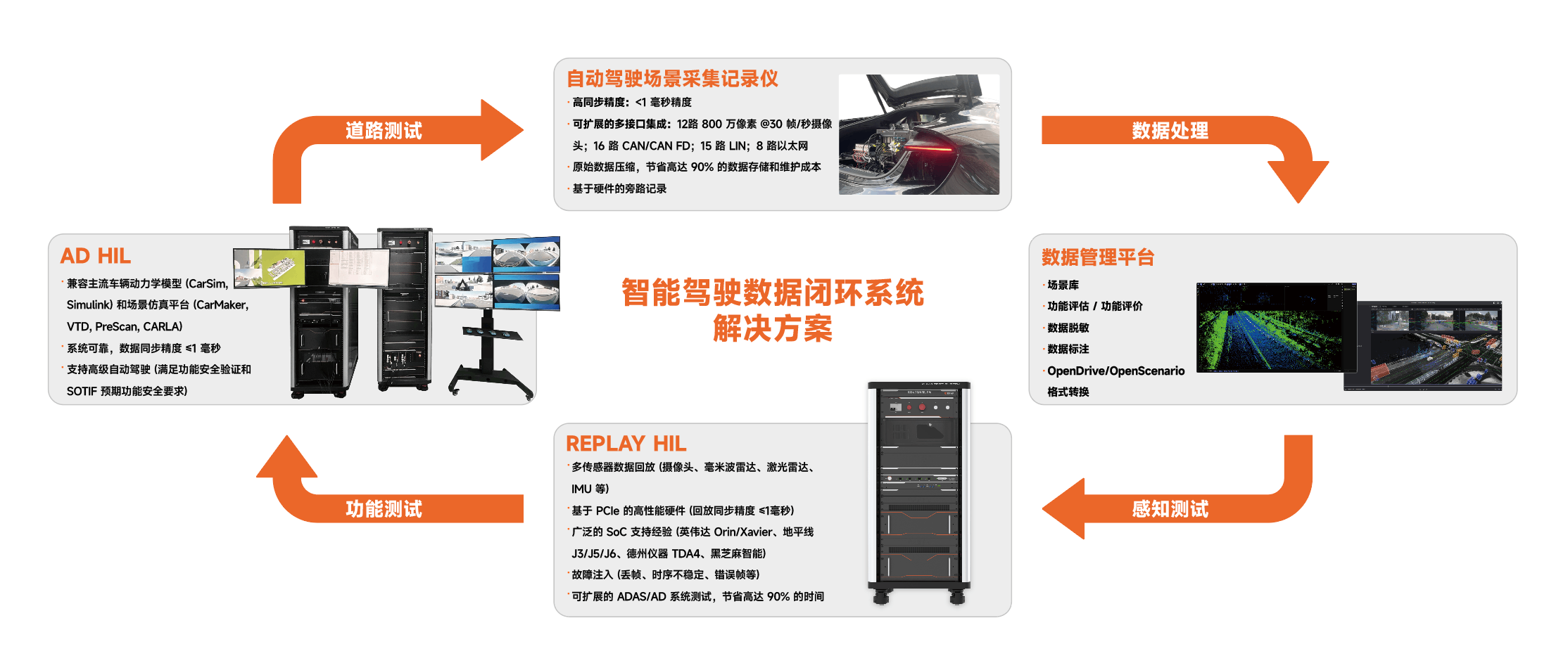 为了协助工程师更快、更全面地了解和评估自动驾驶系统的性能,VCARSYSTEM精心推出了一系列专注于数据回灌系统测试的解决方案,旨在提供全面的测试环境、高效的测试流程以及深入的数据分析,以确保自动驾驶系统的感知能力达到最佳状态。